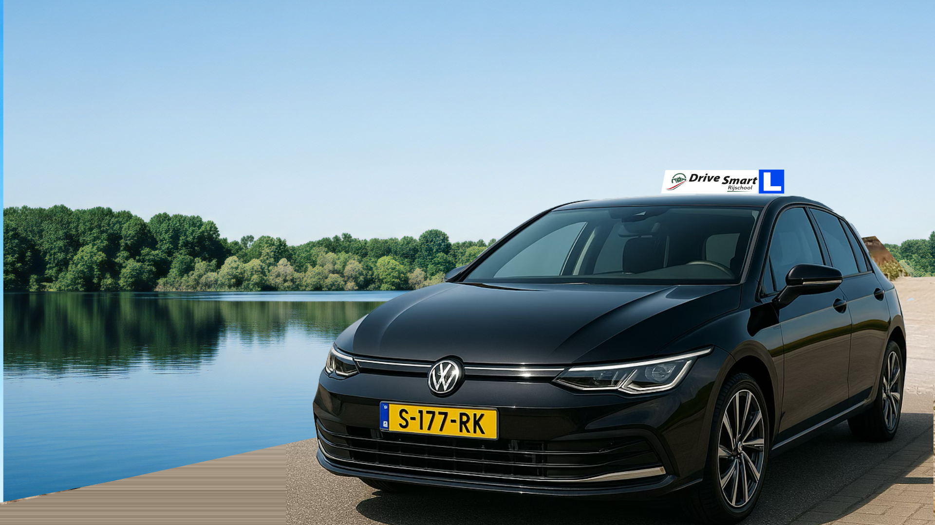 Bij het ontwerpen van zijn de website wilde de eigenaar ook graag zijn nieuwe lesauto op de website hebben, een mooie glimmende sportief uitziende golf. Deze hebben we, middels wat digitaal aanpassen, in een mooie setting geplaatst en staat prominent op de website.
